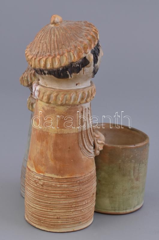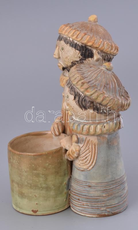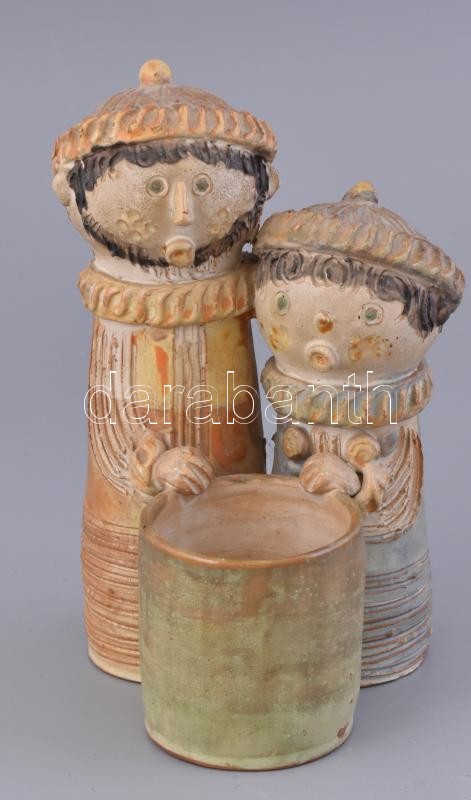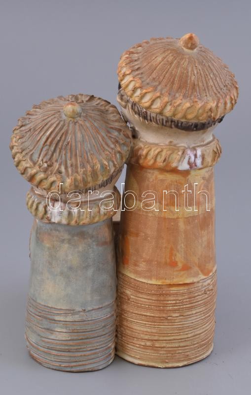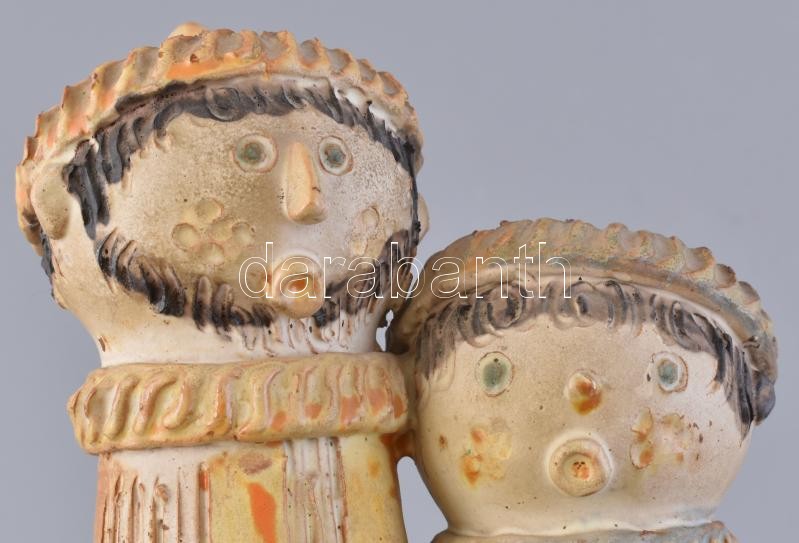Leírás: Kiss Roóz Ilona (1920-2010): Éneklő pár, mázas kerámia, kézzel festett, jelzett, hibátlan, m: 21 cm