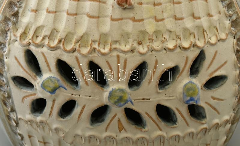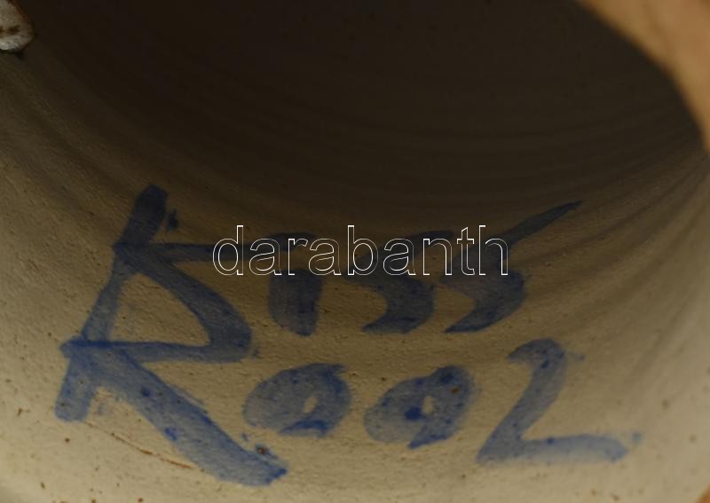 Leírás: Kiss Roóz Ilona (1920-2010): Nagyméretű kendős nő, mázas kerámia, kézzel festett, jelzett, hibátlan, m:39 cm, d:26cm