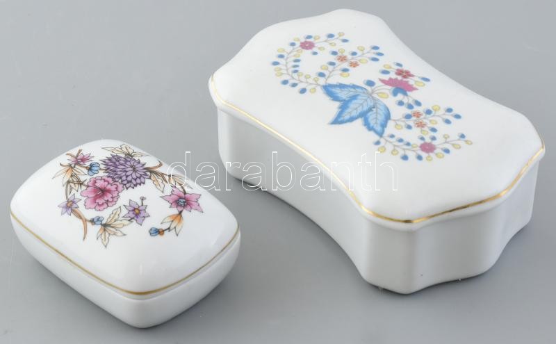 Leírás: 2 db Hollóházi porcelán bonbonier. Matricás, jelzett, minimális kopással, 15,5x9,5 cm és 9x7 cm