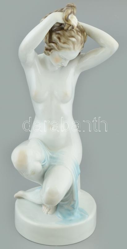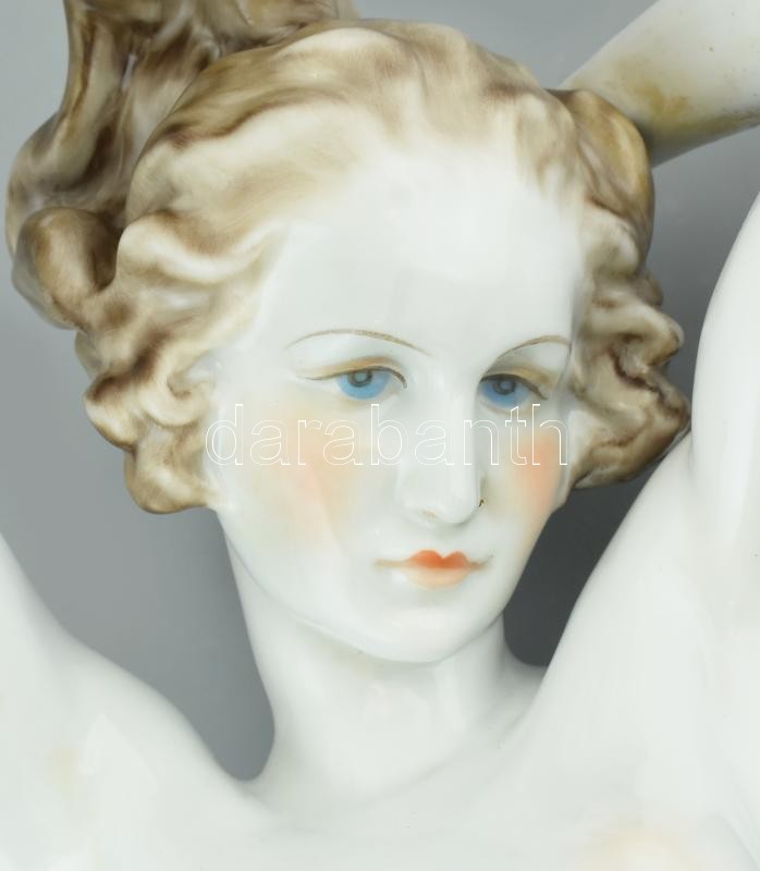 Leírás: Herendi Tertia fürdőző nő, kézzel festett porcelán, kopásnyomokkal, Lux Elek terv, jelzett, m: 55 cm