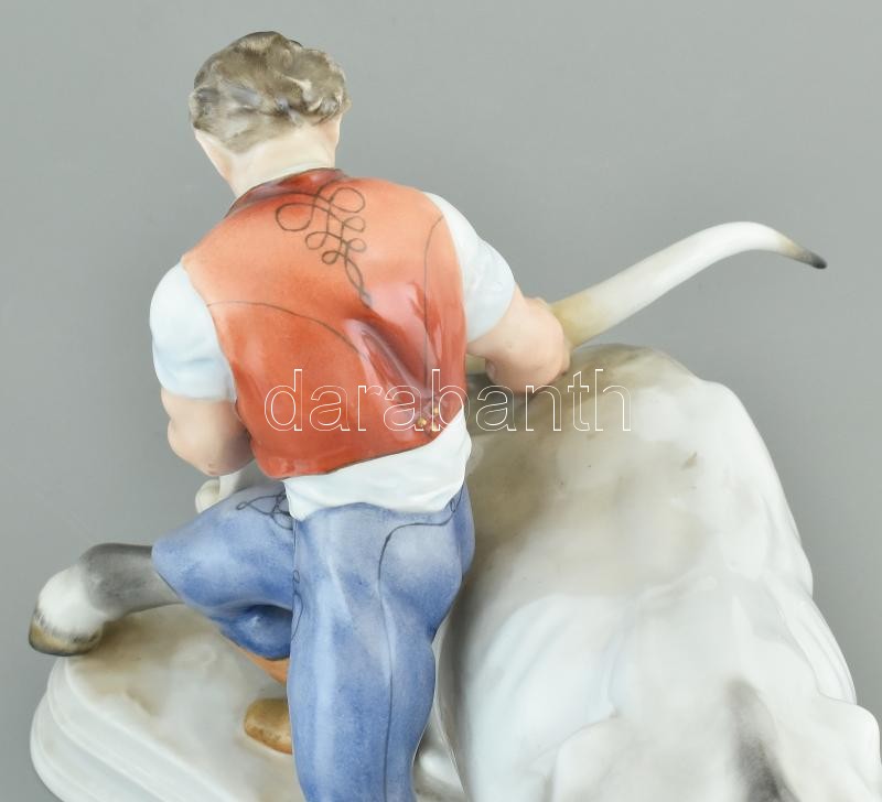 Leírás: Herendi Toldi a Bikával. Színesen festett porcelán. kopott. Jelzett. 43x22x23 cm