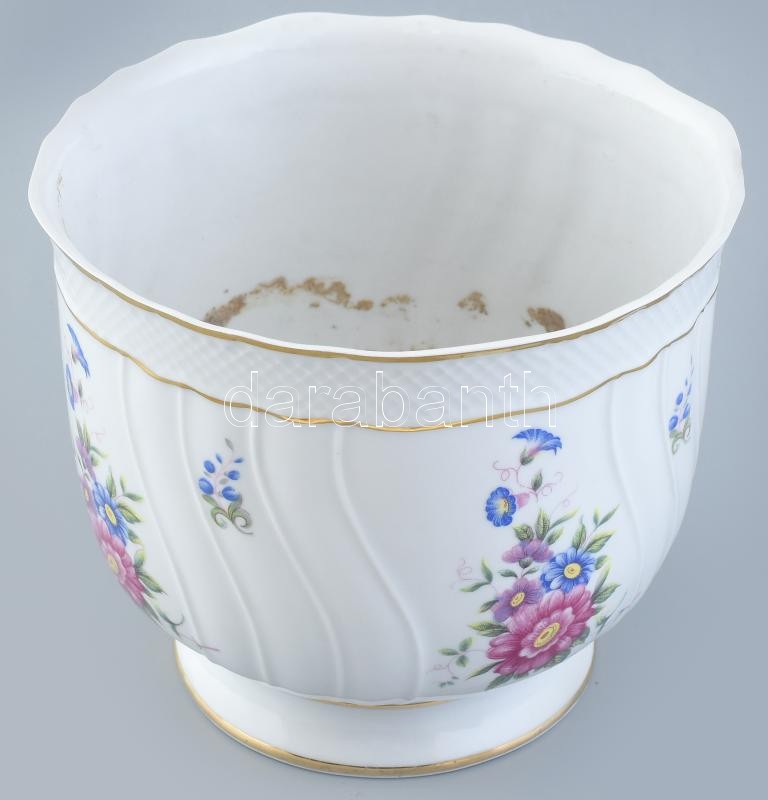Leírás: Hollóházi virágmintás porcelán kaspó, matricás, jelzett, kis kopásnyomokkal, belsejében vízkőfoltokkal, m: 14 cm, d: 16 cm