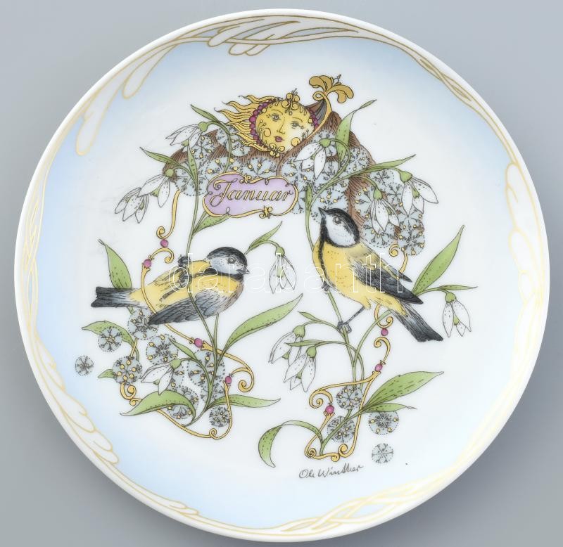Leírás: Hutschenreuter Ole Winther - Januar porcelán tényér. Matricás, jelzett, hibátlan d: 16 cm