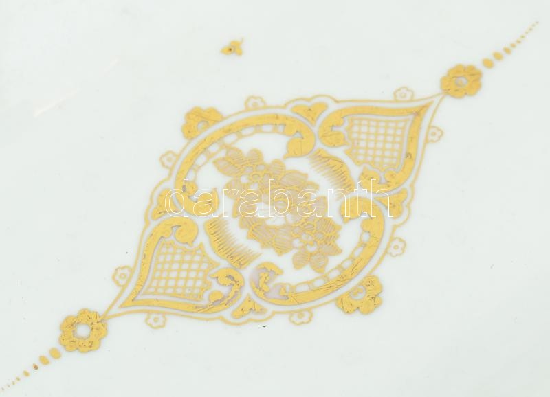 Leírás: KPM porcelán asztali dísztál, részben kézzel festett, jelzett, kopásnyomokkal, 32×24 cm