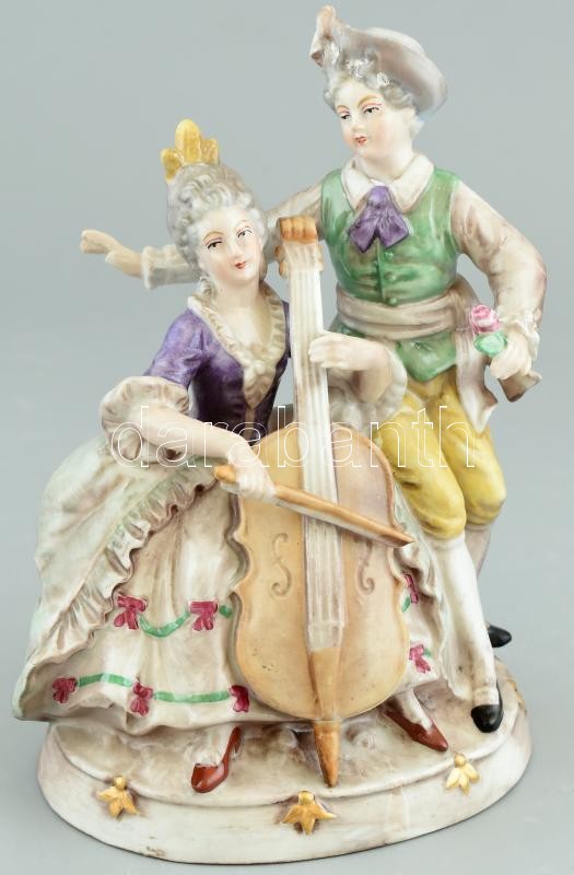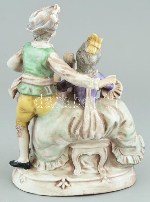 Leírás: Német rokokó jelenetes porcelán, jelzett, kopott, m: 22cm
