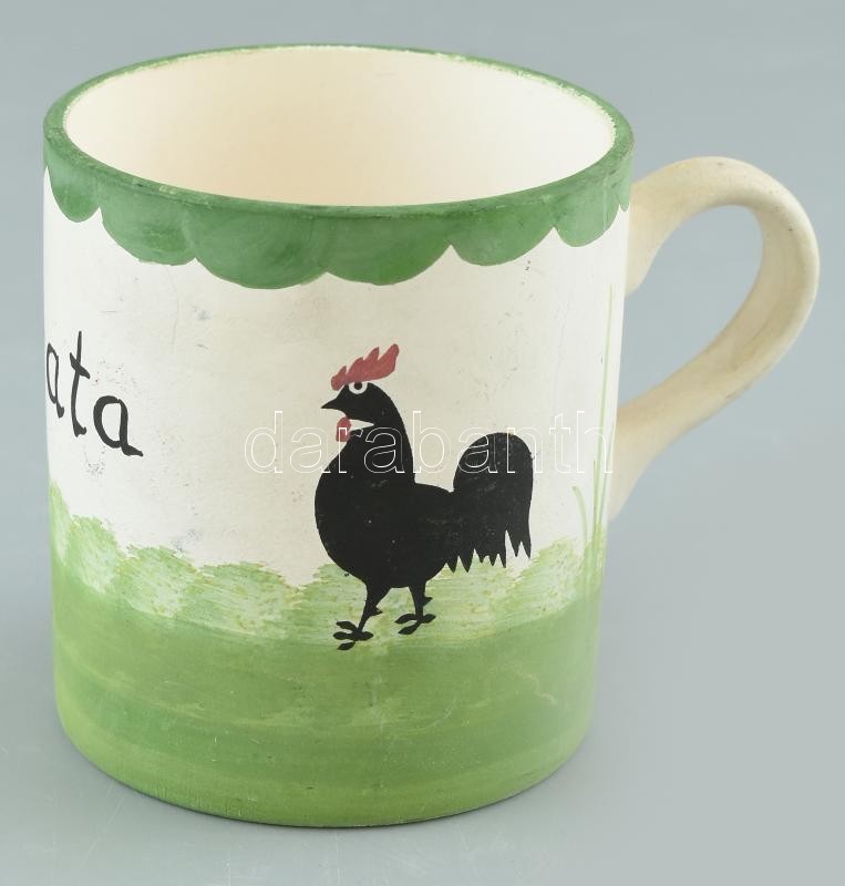 Leírás: Régi porcelán bögre Beata felirattal, kopott, jelzés nélkül, m:8,5cm