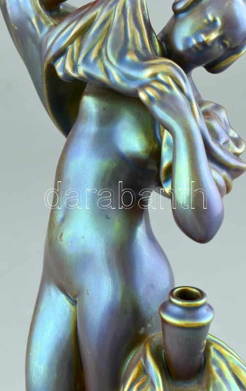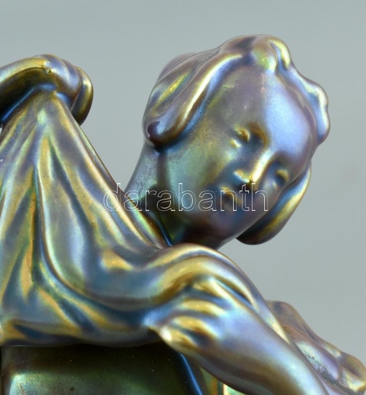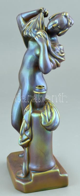 Leírás: Zsolnay vetkőző akt, eozin mázas, jelzett, hibátlan. m: 26 cm