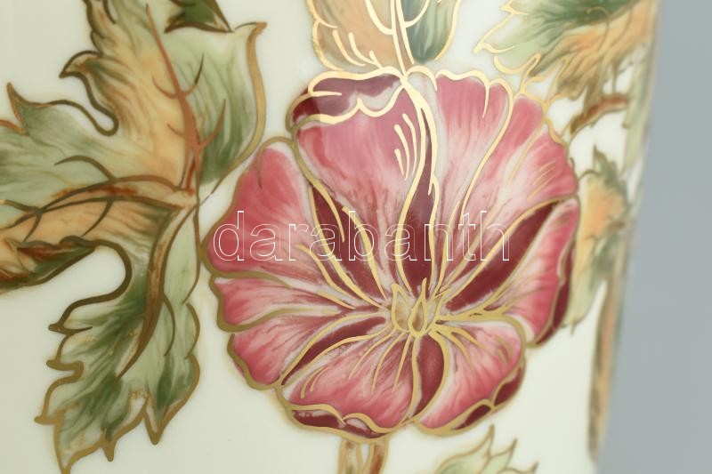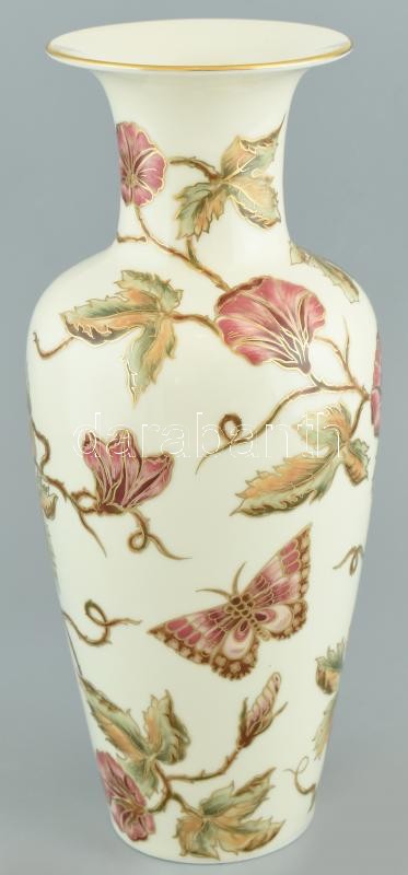 Leírás: Zsolnay virág és pillangó mintás porcelán váza, kézzel festett, jelzett, hibátlan, m: 34,5 cm
