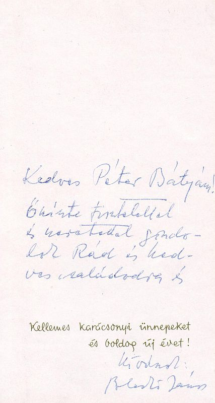 Leírás: 1968. Blaskó János festőművész sk. írása és aláírása karácsonyi üdvözlőlapon