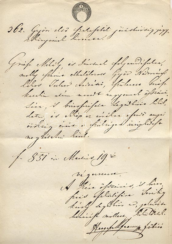 1851. 1Guldenes, 4 oldalas, kitöltött szignetta https://www.darabanth.com/hu/41-Gyorsarveres/41.0/Festmeny-mutargy-papirregiseg-egyeb/Okmanyok~146/1851-1Guldenes-4-oldalas-kitoltott-szignetta~II79409