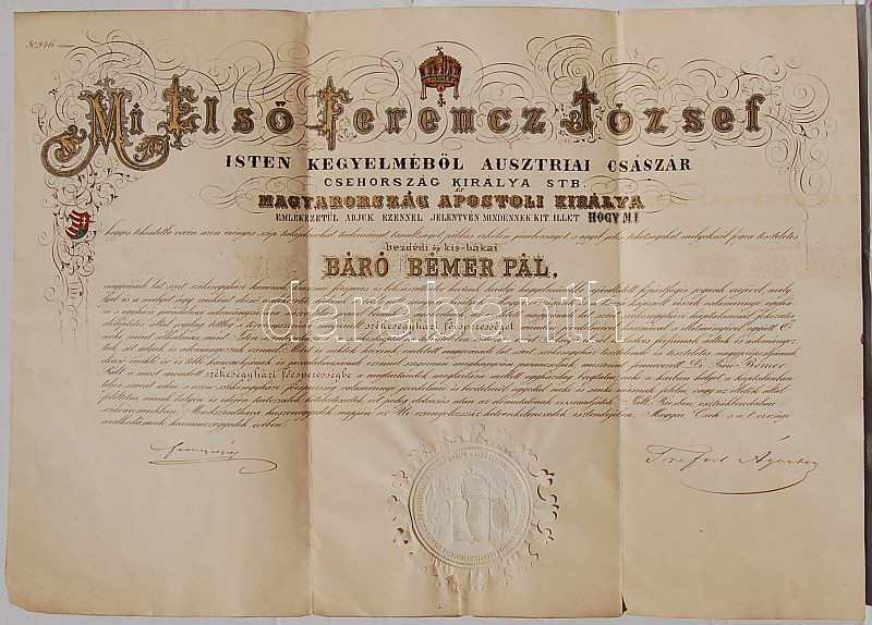 1879 Báró Bémer Pál kinevezése székesegyházi főesperességre Ferencz József és Trefort Ágoston aláírásával, a váradi káptalan és a főprépost ellenjegyzésével