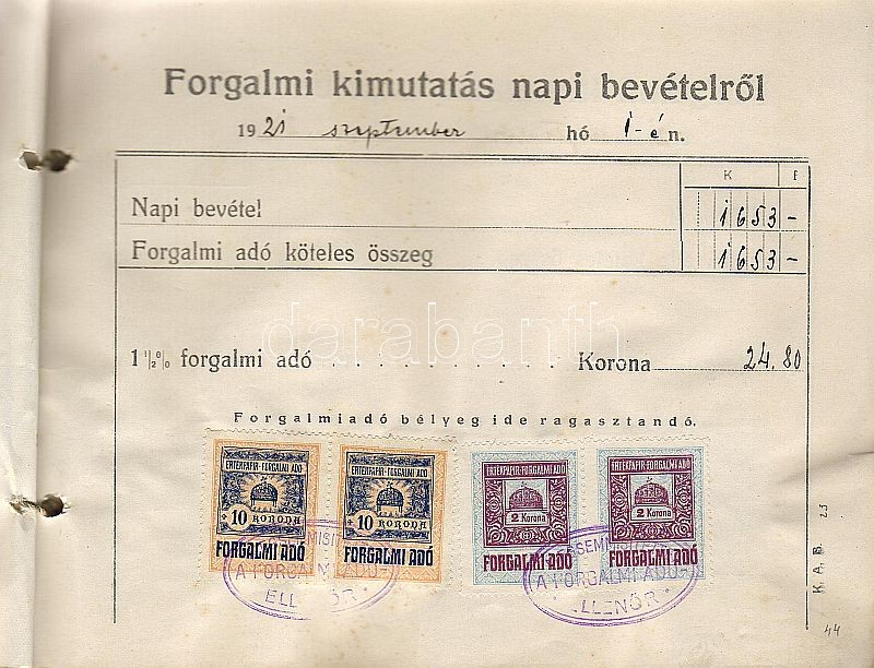1921/22 Forgalmi kimutatás napi bevételről könyv https://www.darabanth.com/hu/41-Gyorsarveres/41.0/Festmeny-mutargy-papirregiseg-egyeb/Okmanyok~146/192122-Forgalmi-kimutatas-napi-bevetelrol-konyv~II79845