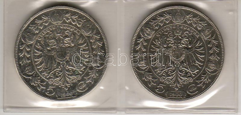 Ausztria 1900. 5K Ag (2x) T:3+ https://www.darabanth.com/hu/41-Gyorsarveres/41.0/Numizmatika/Kulfoldi-fem-es-ezustpenzek~158/Ausztria-1900-5K-Ag-2x-T3plus~II79499