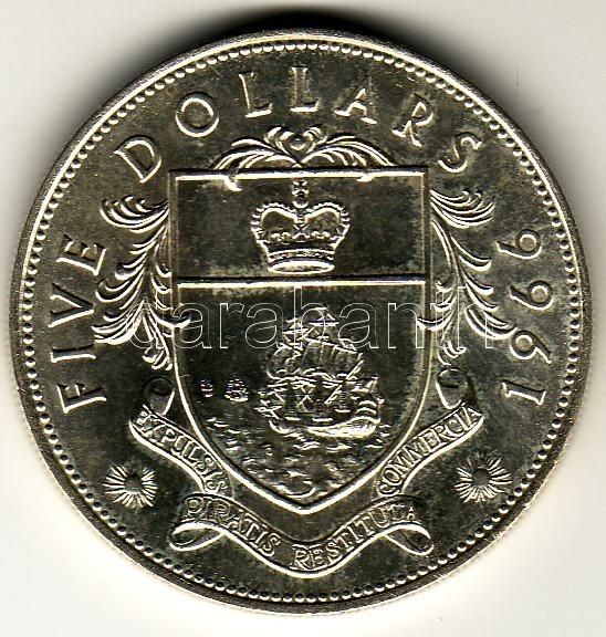 Leírás: Bahama 1966. 5$ "Címer" T:1