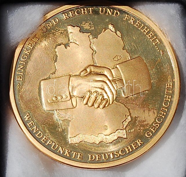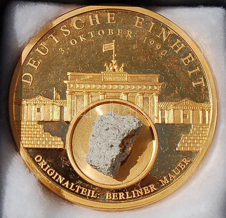Leírás: NSZK 1990. "Német Egység" aranyozott nagy Br plakett eredeti darabbal a berlini falból! Tanúsítvánnyal, díszdobozban T:PP