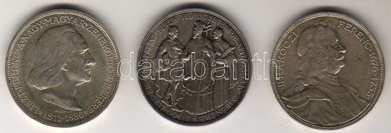 1935-36. 2P "Pázmány+Rákóczi+Liszt" sor T:1,1/2,2+ https://www.darabanth.com/hu/41-Gyorsarveres/41.0/Numizmatika/Magyar-es-magyar-verdejelu-fem-es-ezustpenzek~160/1935-36-2P-PazmanyplusRakocziplusLiszt-sor-T1-12-2plus~II78472