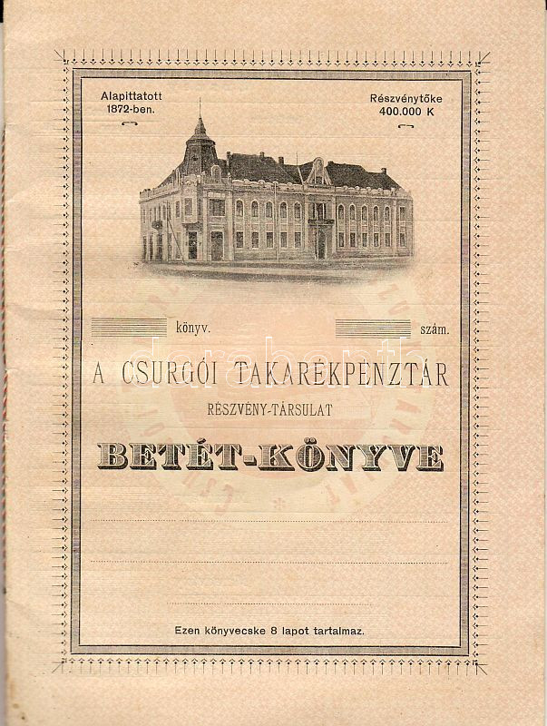 A Csurgói Takarékpénztár Részvény-Társulat díszes betétkönyve, használ... https://www.darabanth.com/hu/41-Gyorsarveres/41.0/Numizmatika/Reszvenyek-ertekpapirok-sorsjegyek-takarekbetetkonyvek~165/A-Csurgoi-Takarekpenztar-Reszveny-Tarsulat-diszes-betetkonyve-hasznalatlan~II79439