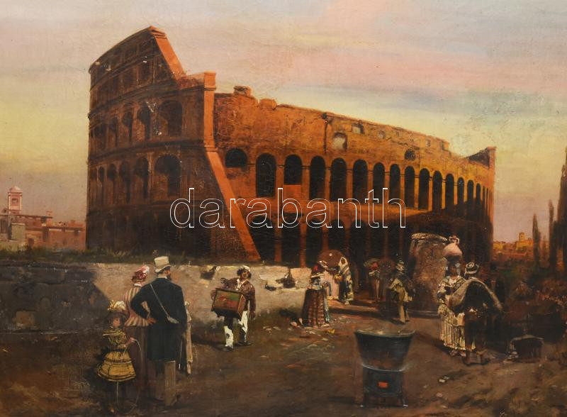Robert Kronabetter Alott (1850 - 1910): A római Colosseum. Olaj, vászon. Jelzett. Restaurált, apró felületi sérülésekkel 70x92 cm Kissé sérült keretben / The Colosseum in Rome. Oil on canvas, signed. Restored, with some minor surface faults, in slightly damaged frame