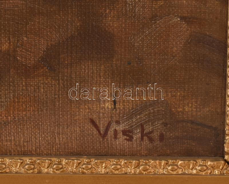 Viski János (1891-1987): Női portré. Olaj, vászon, jelzett. Apró felületi sérüléssel. Dekoratív, sérült fa keretben, 50x40 cm / oil on canvas, signed, with vey minor surface damage, framed