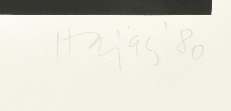 Hajas Tibor (1946-1980): Cím nélkül, 1980. Szitanyomat, papír, jelzett. Próbanyomat PD jelzéssel. Nagyon ritka, gyűjtői darab, nem sokkal Hajas Tibor halála előtt az 1980-ban rendezett Makói Művésztelep idején készült, rendkívüli grafika! Lapszéli apró szakadással, nyomat ép. Nyomat méret: 33,5x49 cm, lapméret: 86x61 cm