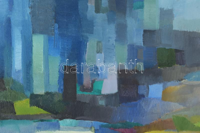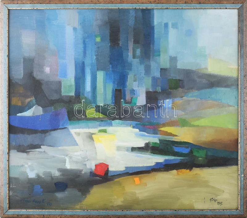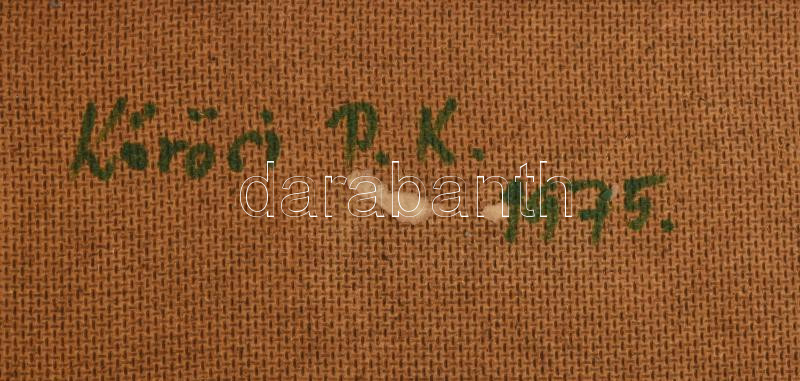 Kőrösi Papp Kálmán (1940-): Eső után, 1975. Olaj, farost, jelzett, hátoldalán autográf felirattal. Apró felületi sérüléssel. 68x78 cm. Fakeretben. / oil on fibre wood, signed, with autograph description on the reverse, framed
