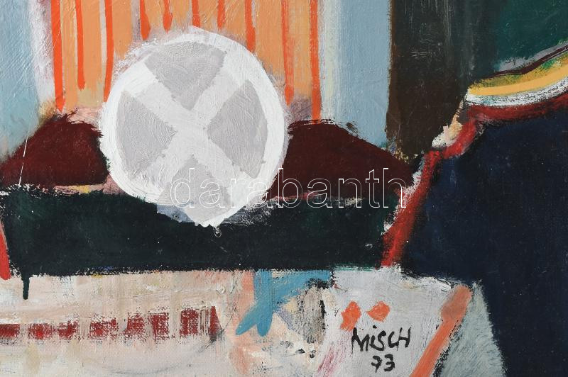 Misch Ádám (1935-1995): Madár, 1973. Olaj, vászon, jelezve középen jobbra lent, hátoldalán Misch Ádám autográf feliratával, fakeretben, 80x60 cm. / Adam Misch (1935-1995): Bird, 1973. Oil on canvas, signed, with autograph description by Adam Misch on the reverse, framed, 80x60 cm