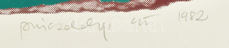 Pinczehelyi Sándor (1946-): Karácsonyi lap, 1982. Szitanyomat, papír, jelzett, számozott (3/20). Mindössze 20 példányban készült sokszorosított grafika a művész PFZ (piros, fehér, zöld) korszakából! Lapméret: 50x70 cm / serigraphy on paper, signed, numbered (3/20).