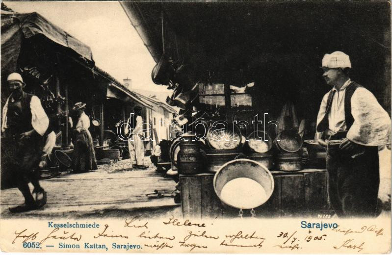 1905 Sarajevo, Kesselschmiede. Simon Kattan / tinsmith shops https://www.darabanth.com/hu/41-Nagyaukcio/41.1/Kepeslapok/Bosznia-Hercegovina~17006/1905-Sarajevo-Kesselschmiede-Simon-Kattan-tinsmith-shops~II3005363