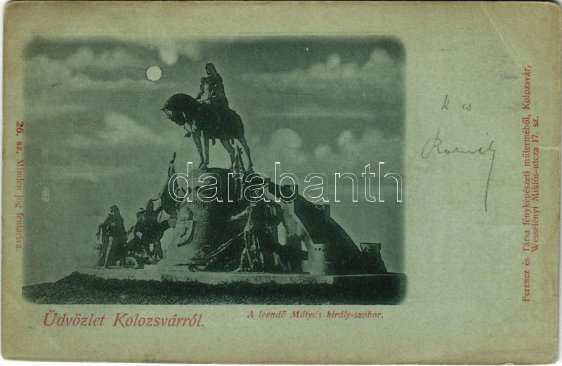 1899 (Vorläufer) Kolozsvár, Cluj; A leendő Mátyás király szobor este. Ferencz és társa fényképészeti műterméből / design of the