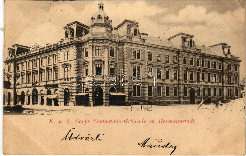 1900 Nagyszeben, Hermannstadt, Sibiu; Cs. és kir. Hadtestparancsnokság... https://www.darabanth.com/hu/41-Nagyaukcio/41.1/Kepeslapok/Erdely~16959/1900-Nagyszeben-Hermannstadt-Sibiu-Cs-es-kir-Hadtestparancsnoksag-Kk-Corps-Commando-Geba~II2986496