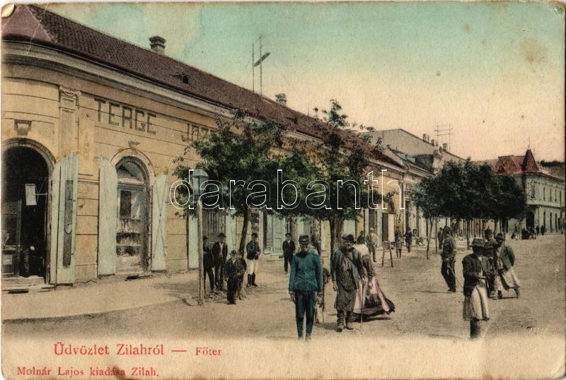 1907 Zilah, Zalau; Fő tér, Terge József üzlete, csendőr. Molnár Lajos ... https://www.darabanth.com/hu/41-Nagyaukcio/41.1/Kepeslapok/Erdely~16959/1907-Zilah-Zalau-Fo-ter-Terge-Jozsef-uzlete-csendor-Molnar-Lajos-kiadasa-main-square-~II2022168