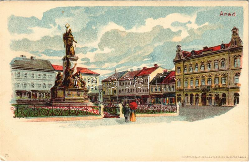 Leírás: Arad, Vértanú szobor / martyrs statue. Kunstanstalt Kosmos Art Nouveau, litho s: Geiger R. (EK)