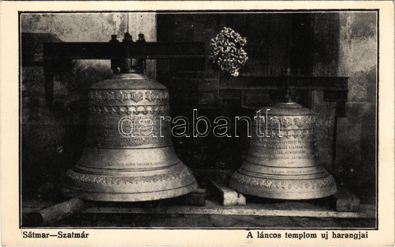 Szatmárnémeti, Szatmár, Satu Mare; A láncos templom új harangjai. Szécsen Zoltán felvétele. Béres Károly kiadása / the new church bells (gyűrődés / crease)