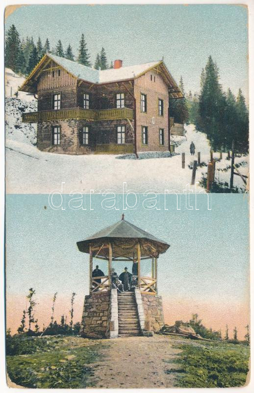 Szebenjuharos, Hohe Rinne, Paltinis; Kurhaus Hohe Rinne, Wohnpavillon u. Conradt-Warte auf dem Oncest / Gyógyház és kilátó torony télen / spa and look-out tower in winter (fl)