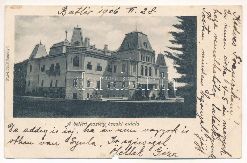 1906 Betlér, Betliar (Rozsnyó, Roznava); Gróf Andrássy kastély. Falvi ... https://www.darabanth.com/hu/41-Nagyaukcio/41.1/Kepeslapok/Felvidek~16960/1906-Betler-Betliar-Rozsnyo-Roznava-Grof-Andrassy-kastely-Falvi-Jeno-kiadasa-castle-~II2870449