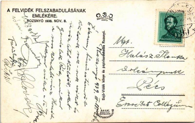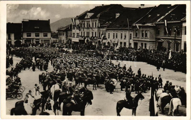 1938 Rozsnyó, Roznava; bevonulás / entry of the Hungarian troops https://www.darabanth.com/hu/41-Nagyaukcio/41.1/Kepeslapok/Felvidek~16960/1938-Rozsnyo-Roznava-bevonulas-entry-of-the-Hungarian-troops~II3007771