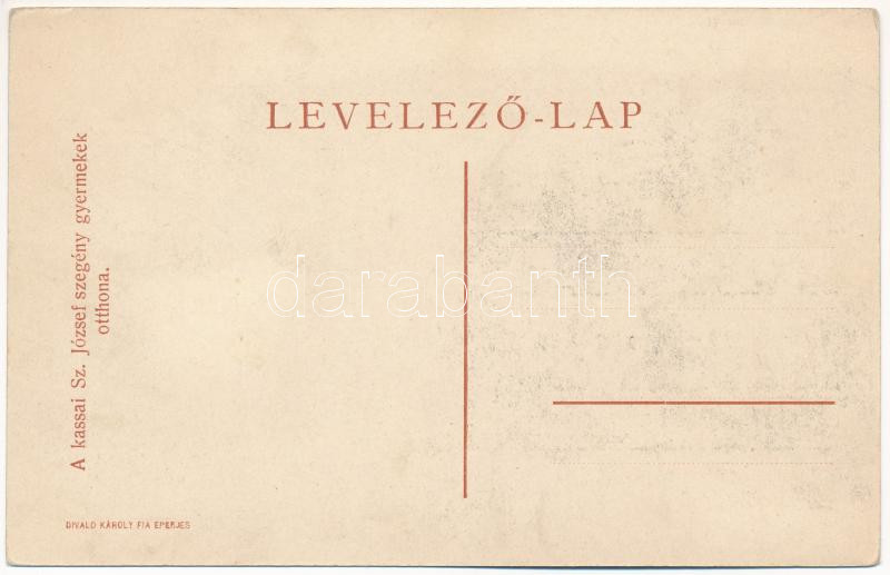 Kassa, Kosice; Szent József szegény gyermekek otthona. Divald Károly f... https://www.darabanth.com/hu/41-Nagyaukcio/41.1/Kepeslapok/Felvidek~16960/Kassa-Kosice-Szent-Jozsef-szegeny-gyermekek-otthona-Divald-Karoly-fia-kiadasa-orphanage-EK~II3007196