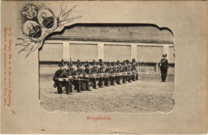 1901 Csendőrök sorgyakorlata. Stesser György csendőrőrnagy és Jablánczy Sándor csendőrség parancsnok. Ellinger Ede fényképész kiadása 14. / Hungarian gendarmerie shooting practice. Art Nouveau