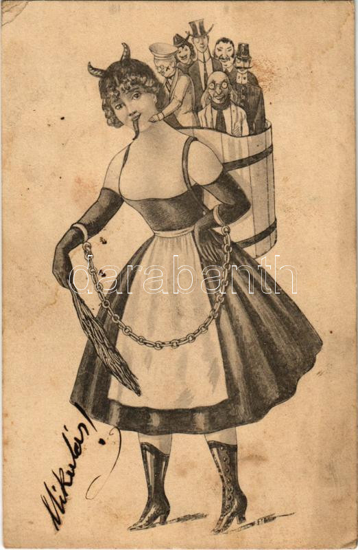 1902 Krampusz hölgy urakkal a puttonyában / Krampus lady (EK) https://www.darabanth.com/hu/41-Nagyaukcio/41.1/Kepeslapok/Krampusz~16983/1902-Krampusz-holgy-urakkal-a-puttonyaban-Krampus-lady-EK~II3007955