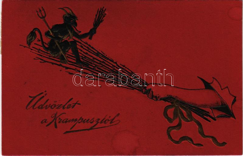 1914 Üdvözlet a Krampusztól! / Greetings from the Krampus with birch. ... https://www.darabanth.com/hu/41-Nagyaukcio/41.1/Kepeslapok/Krampusz~16983/1914-Udvozlet-a-Krampusztol-Greetings-from-the-Krampus-with-birch-Emb-litho-fl~II3008355