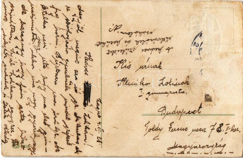 1928 Üdvözlet a Krampusztól! / Krampus with boy, birch and chains (EB) https://www.darabanth.com/hu/41-Nagyaukcio/41.1/Kepeslapok/Krampusz~16983/1928-Udvozlet-a-Krampusztol-Krampus-with-boy-birch-and-chains-EB~II3008366