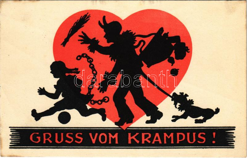 Gruss vom Krampus! / Krampus with birch, chains and dog, silhouette (f... https://www.darabanth.com/hu/41-Nagyaukcio/41.1/Kepeslapok/Krampusz~16983/Gruss-vom-Krampus-Krampus-with-birch-chains-and-dog-silhouette-fa~II3008380