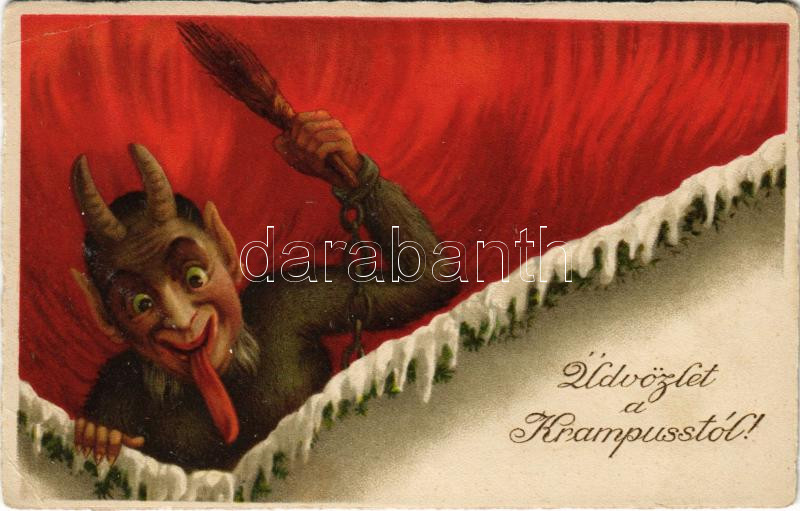 Üdvözlet a Krampusztól! / Krampus with birch and chains (EB) https://www.darabanth.com/hu/41-Nagyaukcio/41.1/Kepeslapok/Krampusz~16983/Udvozlet-a-Krampusztol-Krampus-with-birch-and-chains-EB~II3008362