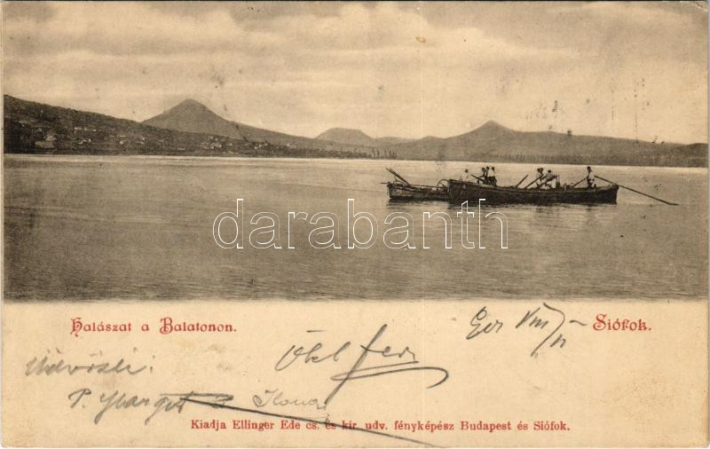 1901 Siófok, Halászat a Balatonon. Ellinger Ede fényképész https://www.darabanth.com/hu/41-Nagyaukcio/41.1/Kepeslapok/Magyarorszag~16958/1901-Siofok-Halaszat-a-Balatonon-Ellinger-Ede-fenykepesz~II3007174