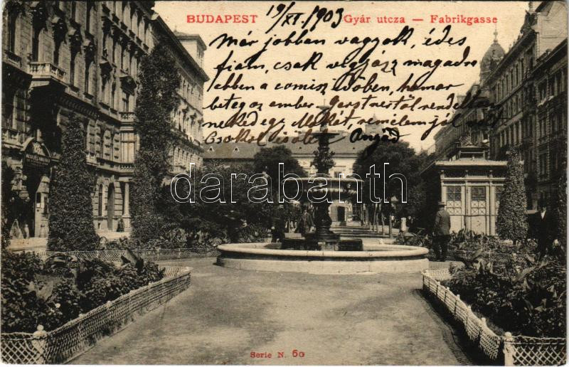 1903 Budapest VI. Gyár utca, szökőkút, Magyar Üveg homályosító és mint... https://www.darabanth.com/hu/41-Nagyaukcio/41.1/Kepeslapok/Magyarorszag~16958/1903-Budapest-VI-Gyar-utca-szokokut-Magyar-Uveg-homalyosito-es-mintazo-gyar-EK~II3008359
