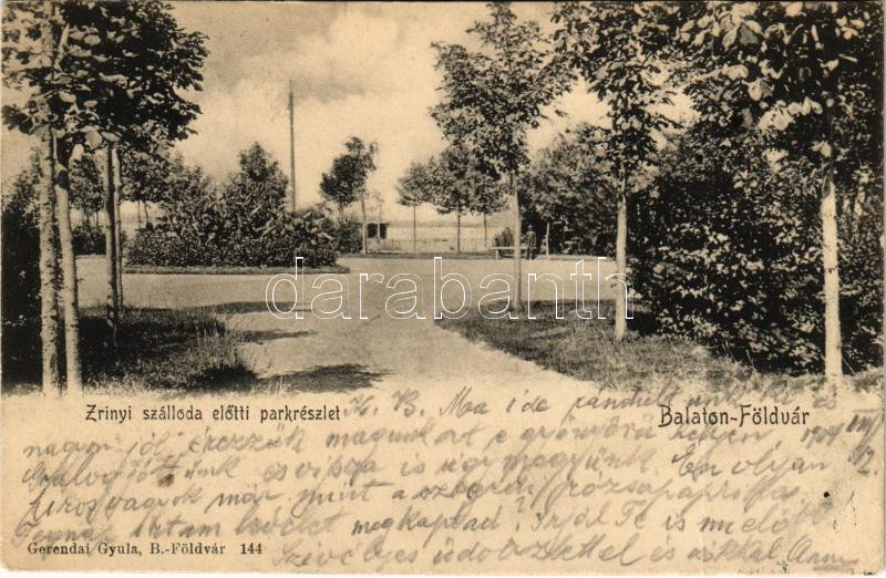 1904 Balatonföldvár, Zrínyi szálloda előtti park. Gerendai Gyula 144. ... https://www.darabanth.com/hu/41-Nagyaukcio/41.1/Kepeslapok/Magyarorszag~16958/1904-Balatonfoldvar-Zrinyi-szalloda-elotti-park-Gerendai-Gyula-144-fa~II3007163