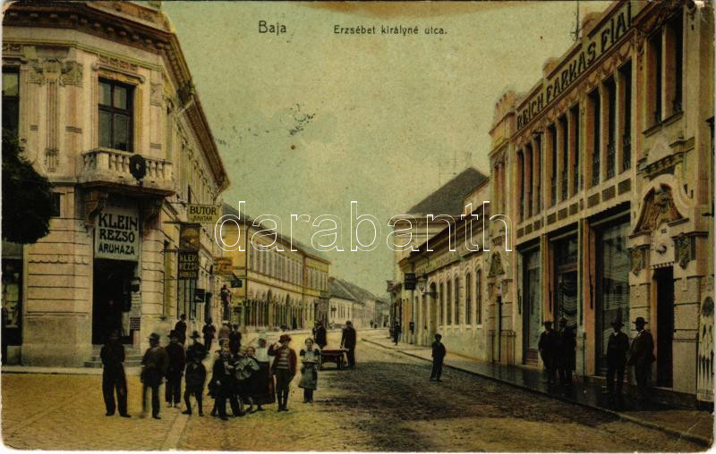 1909 Baja, Erzsébet királyné utca, Klein Rezső áruháza, Reich Farkas f... https://www.darabanth.com/hu/41-Nagyaukcio/41.1/Kepeslapok/Magyarorszag~16958/1909-Baja-Erzsebet-kiralyne-utca-Klein-Rezso-aruhaza-Reich-Farkas-fia-uzlete-Kobanyai-k~II2980304