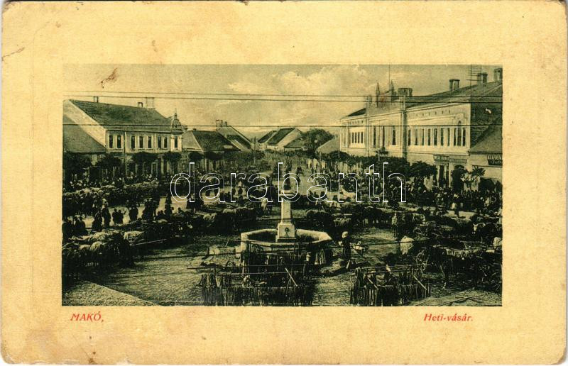 1912 Makó, Hetivásár, piac, üzletek. W.L. Bp. 4107/4117. (EB) https://www.darabanth.com/hu/41-Nagyaukcio/41.1/Kepeslapok/Magyarorszag~16958/1912-Mako-Hetivasar-piac-uzletek-WL-Bp-41074117-EB~II3007819
