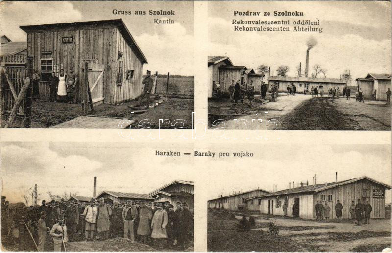 1916 Szolnok, K.u.k. Reservespital Baracken, Kantin, Rekonvalescenten Abteilung / Cs. és kir. tartalékos katonai kórházi laktanya, lábadozó osztály (EK)