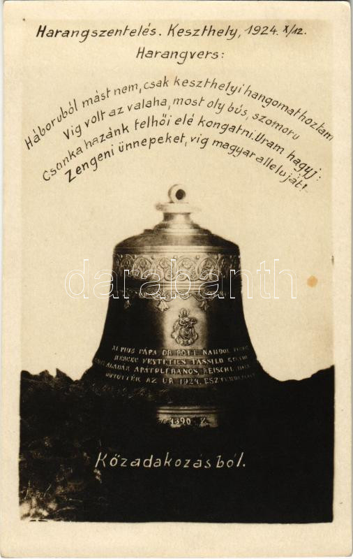 1924 Keszthely, Harangszentelés, harangvers. Tímár Rózsika fényképésze... https://www.darabanth.com/hu/41-Nagyaukcio/41.1/Kepeslapok/Magyarorszag~16958/1924-Keszthely-Harangszenteles-harangvers-Timar-Rozsika-fenykepeszeti-muterme-photo~II2923092